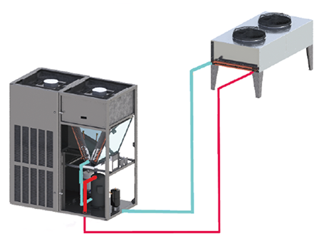 由機組室內風機驅動機房內空氣流動,在此過程中室內空氣流經空調蒸發器,將熱量傳遞給制冷劑,制冷劑經由制冷系統管道輸送到室外,通過冷凝器將熱量散播到室外環境中。空調機組和室外冷凝器通過封閉的制冷管道相連。