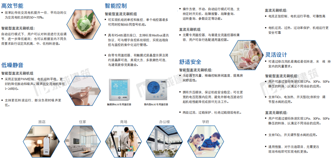 YBFC風機盤管機組 YBFC系列風機盤管,有吊頂暗裝、立式暗裝兩大系列,每種系列機型均有2排管、3排管可選,各10個型號。標準工況風量范圍從180m3 /h到 2380m3/h(高速),供冷范圍量從1.78~12.94kW,供熱范圍從1.63~21.74kW。產品型號齊全,更好的滿足客戶的不同需求。該產品不僅設計嚴謹,制造精心;款式新穎,結構先進;性能高效,噪省低,耗電少,安全可靠,而且維修安裝方便。 高能效 機組換熱器采用優質銅管,配以高效波紋雙曲開窗親水鋁翅片,運用先進的機械無伸縮漲管工藝,換熱效率高。配以大風量低噪聲風機強化傳熱,使機組發揮最大的傳熱效能。 低噪聲 機組均經過匹配優化,風機經過逐一校驗,確保機組寧靜高效地工作。 無凝露 機組凝結水盤為整體沖壓一次成型,無焊縫、焊點;難燃型保溫材料整體粘貼于水盤,杜絕滴漏水和凝露的現象。 安裝簡單 立式暗裝風機盤管機組可靠墻安裝在窗臺下,客戶可根據自己的喜好來裝修房間,既舒適又美觀。 維護方便 電機采用進口高精度優質滾珠軸承,無須加油,自行潤滑,噪聲低,壽命長。電機中心軸均經調質和表面防腐蝕處理,經久耐用。 靈活應用 提供多種選項,滿足客戶的不同需求。 品質保證 YBFC系列風機盤管通過美國空調制冷協會AHRI認證。 |