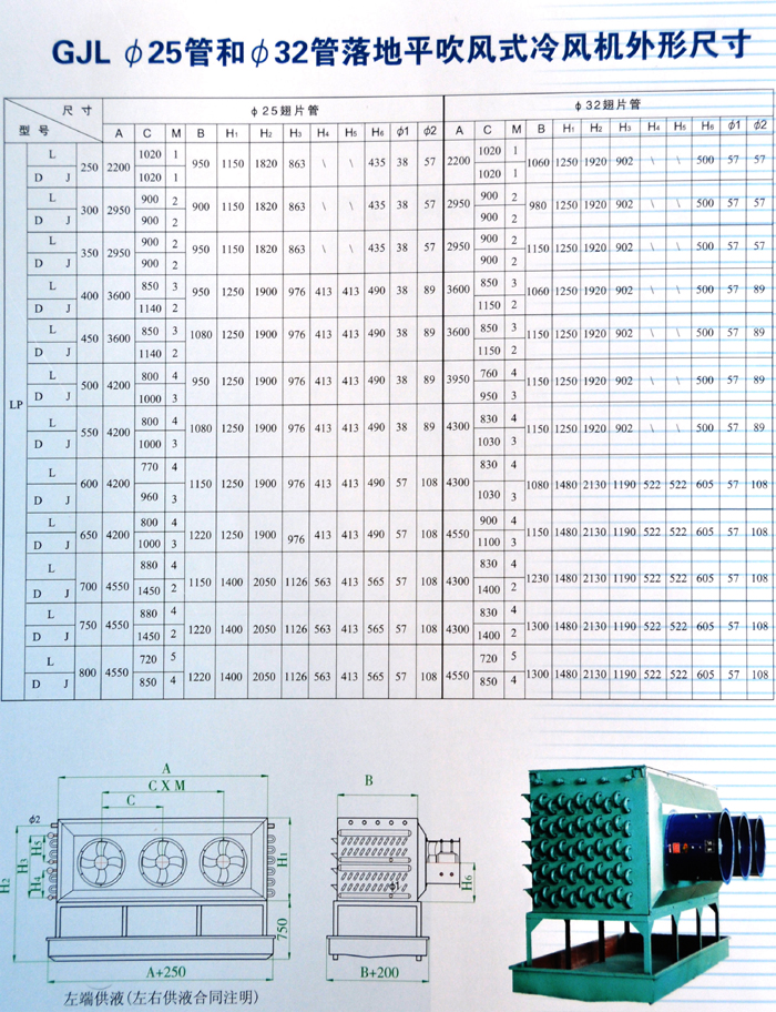 高效冷風機換熱管有優質無縫鋼管、優質不銹鋼無縫鋼管、優質無縫鋁管、銅管;翅片材質有鋼片、鋁片、不銹鋼片;翅片管組型式有鋼管鋼片、鋼管鋁片、鋁管鋁片、不銹鋼管鋁片、不銹鋼管不銹鋼片、銅管鋁片。